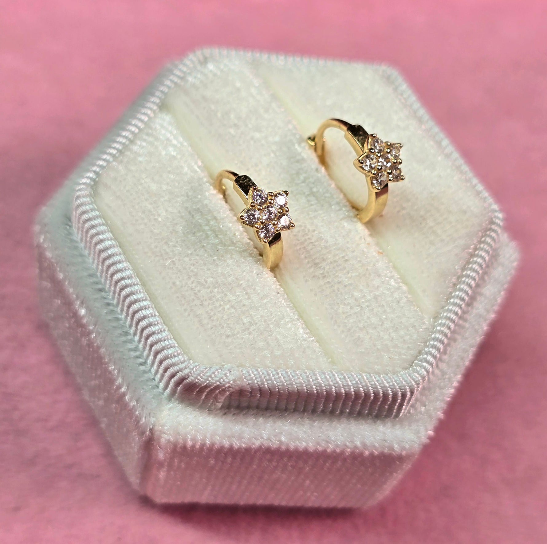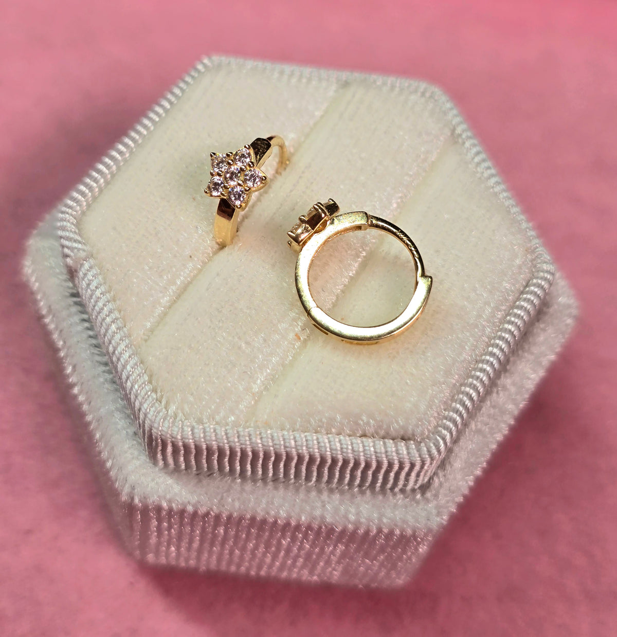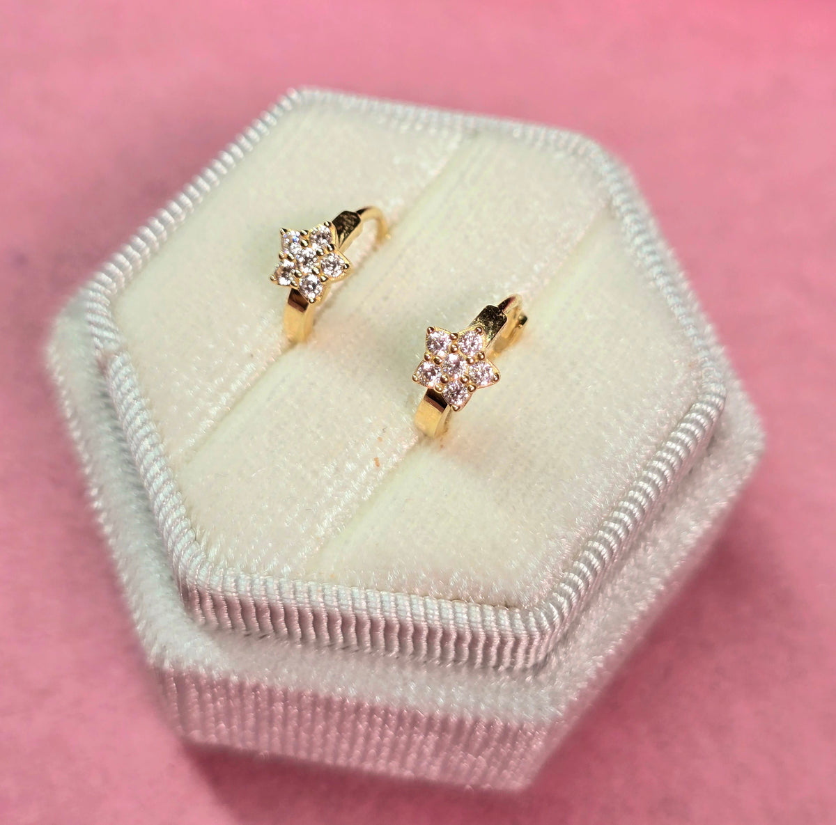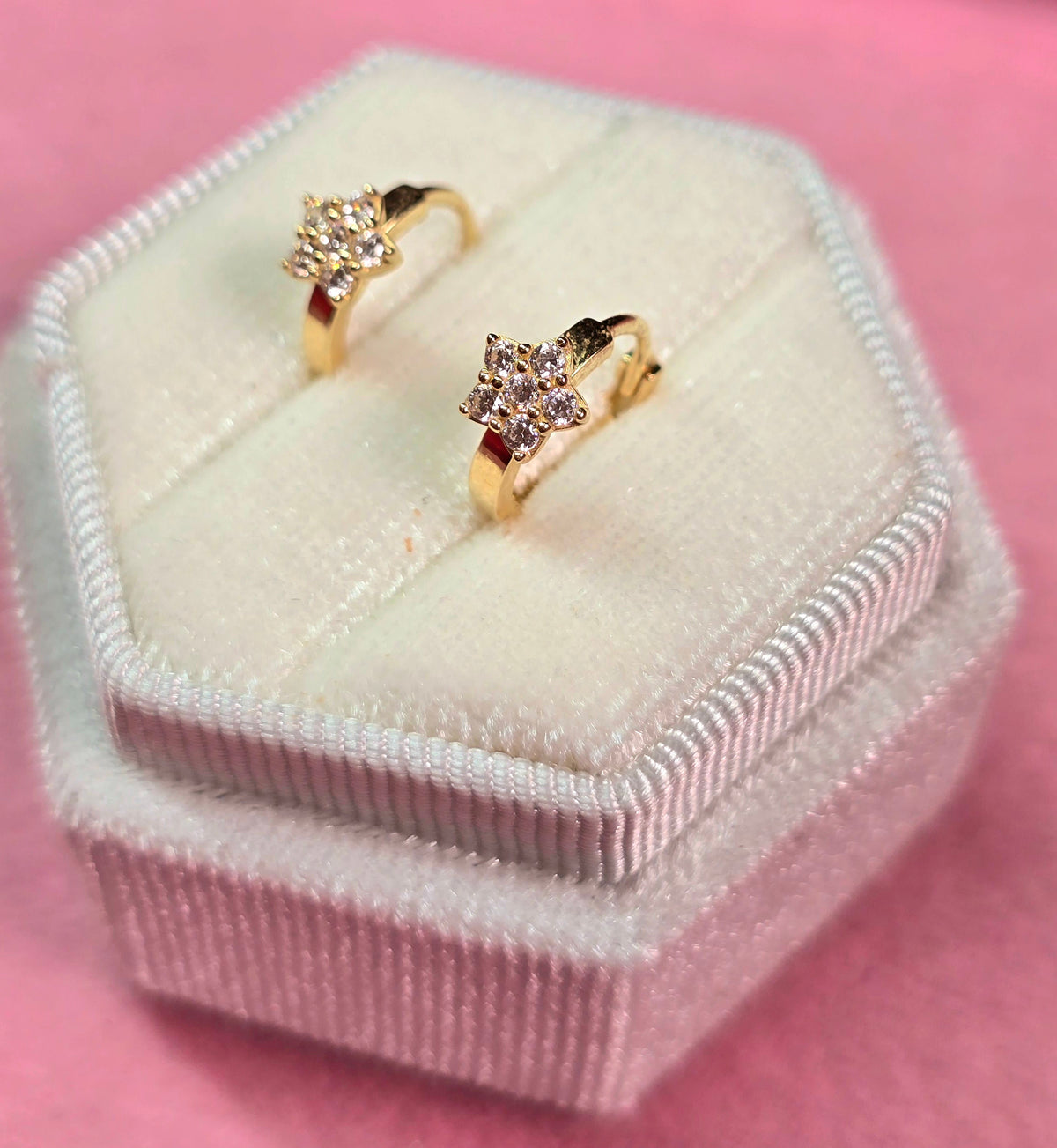 Hermosas argollas de oro 10k con detalle de flor frontal, perfectas para tus piercings, arete principal ó para niña.
