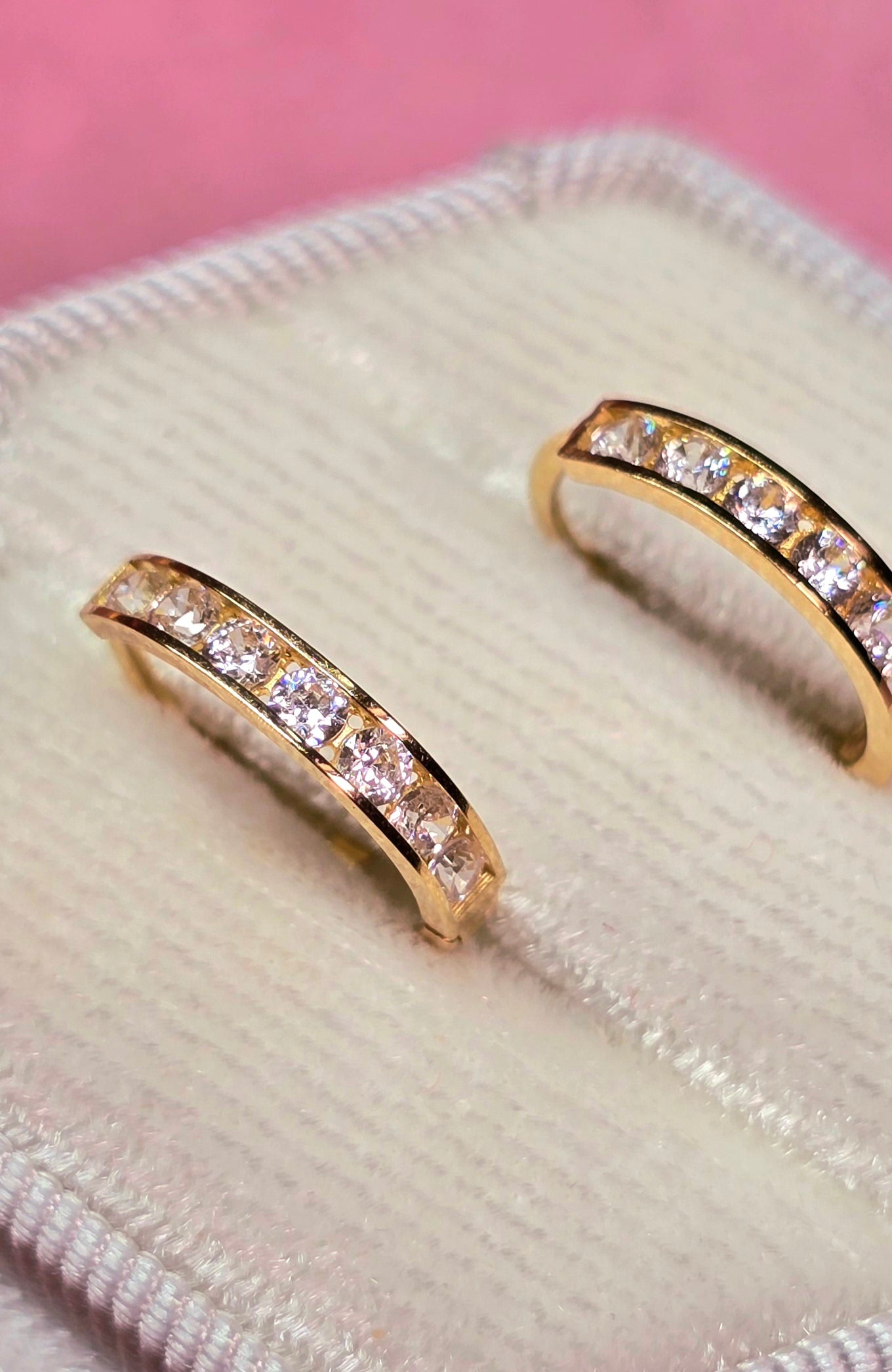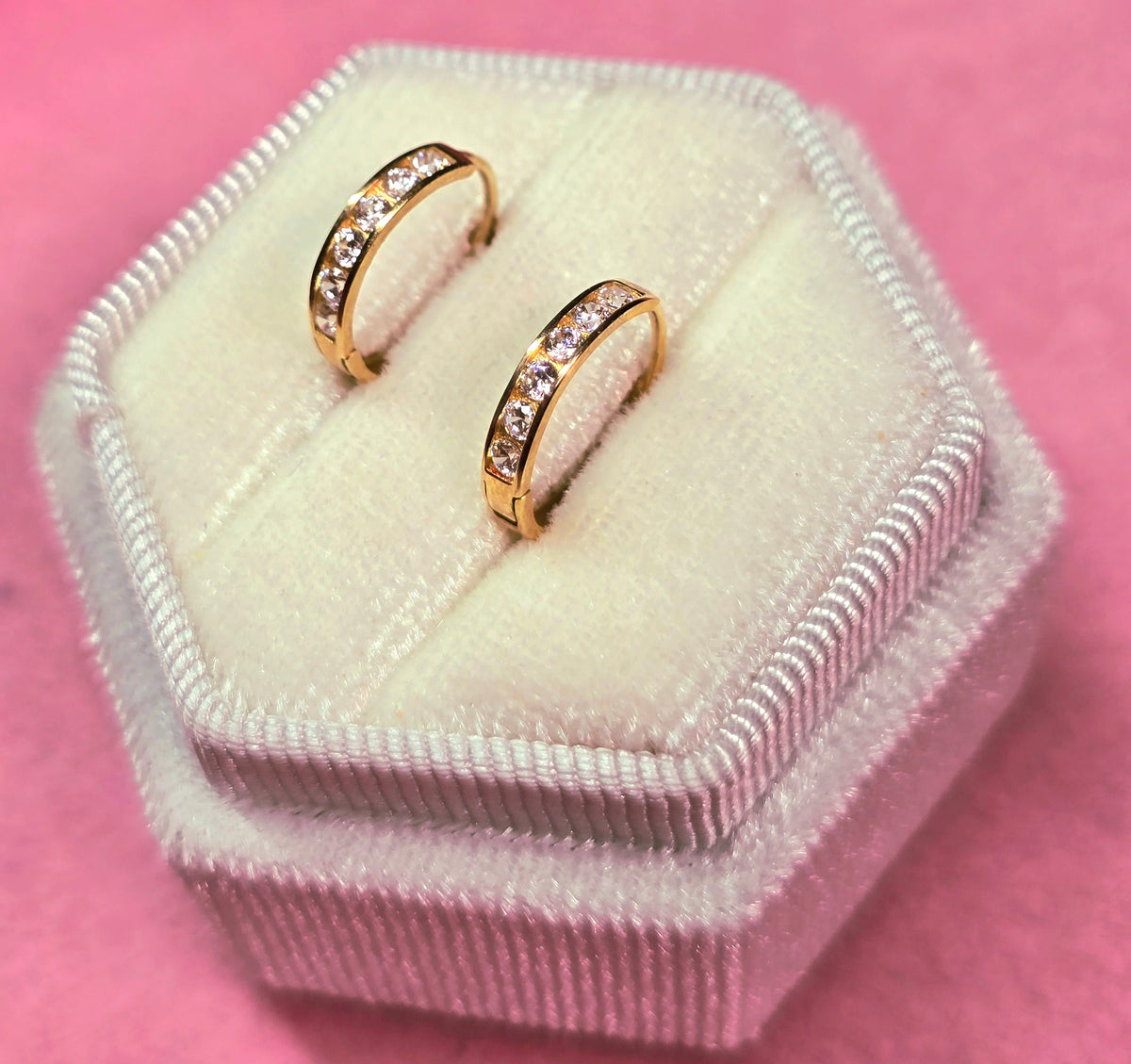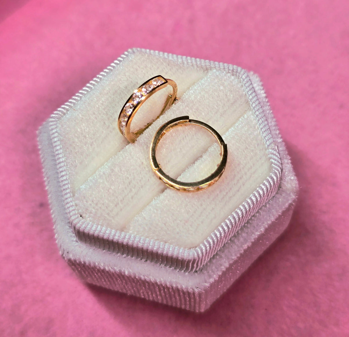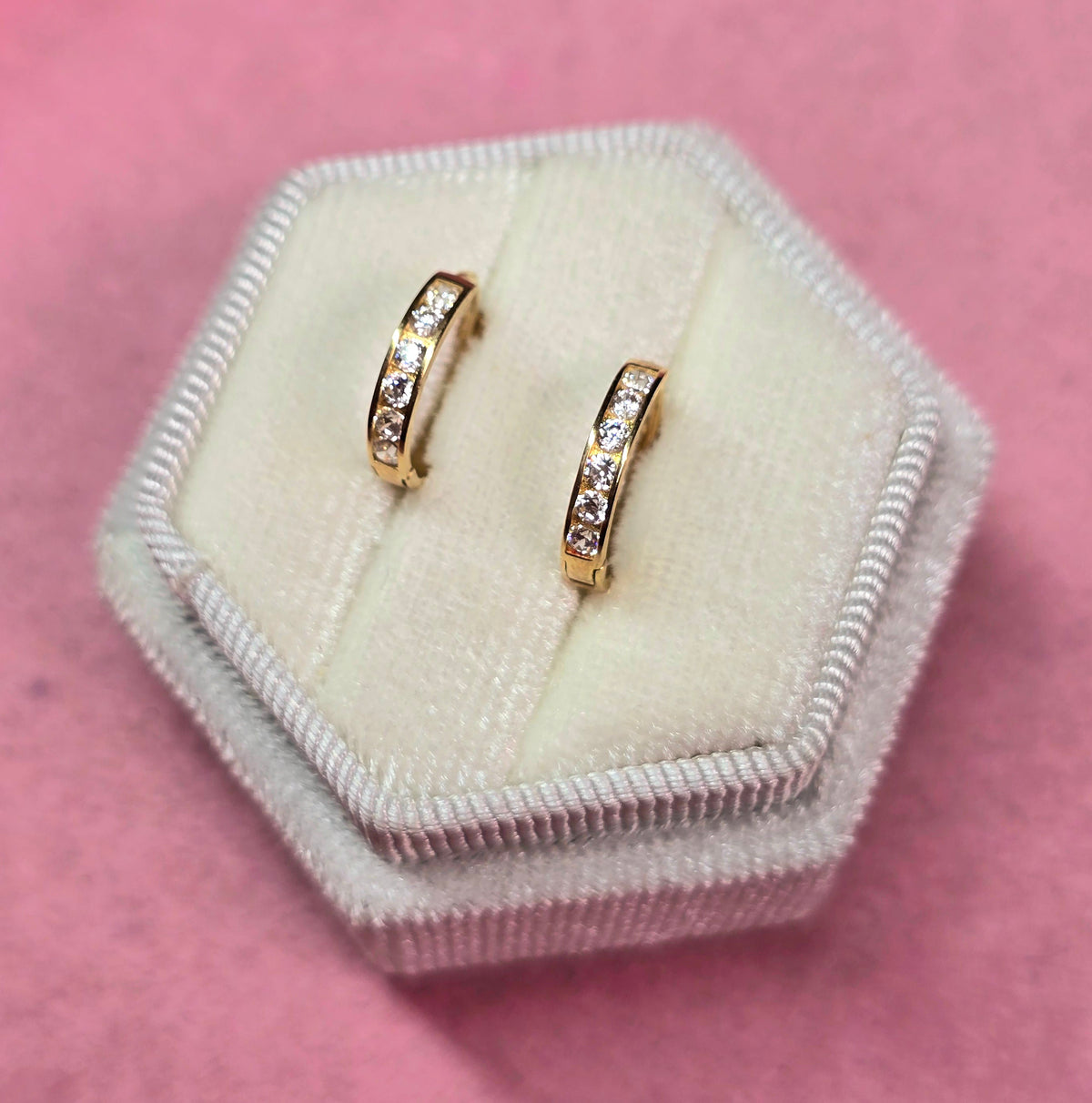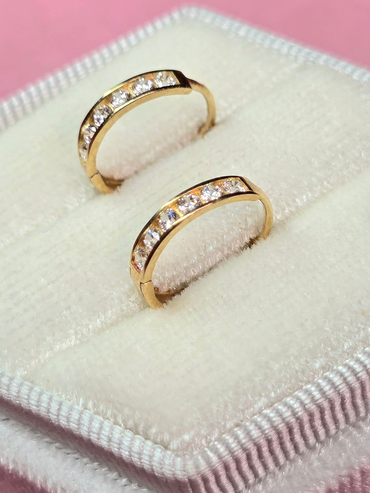 Argollas de oro 10k, diseño super clásico con circones.