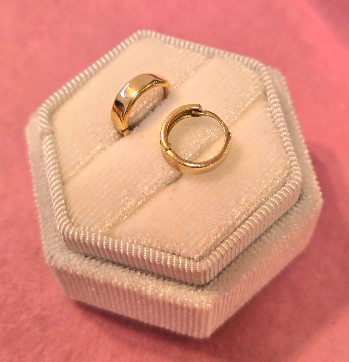 Aretes de oro 14k puro, con cierre de rosquita, se pueden usar desde los 10 dias de nacida e ideales para tus piercings. (Tomar en cuenta que no debe ser muy gruesa tu orejita)