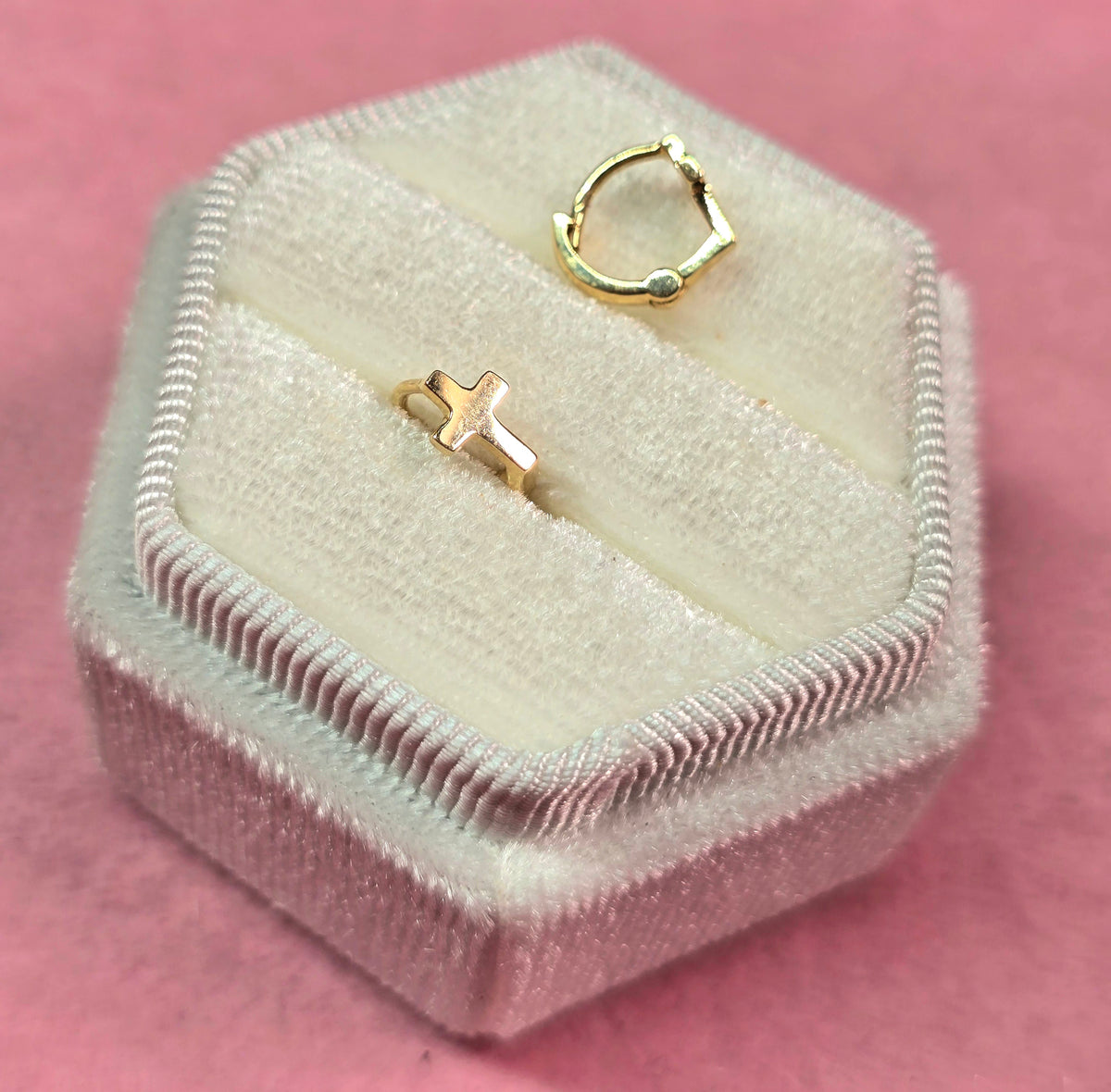 Aretes de oro 14k con tapon enroscable y formas, ideales para piercings y para niñas! todos te encantaran!