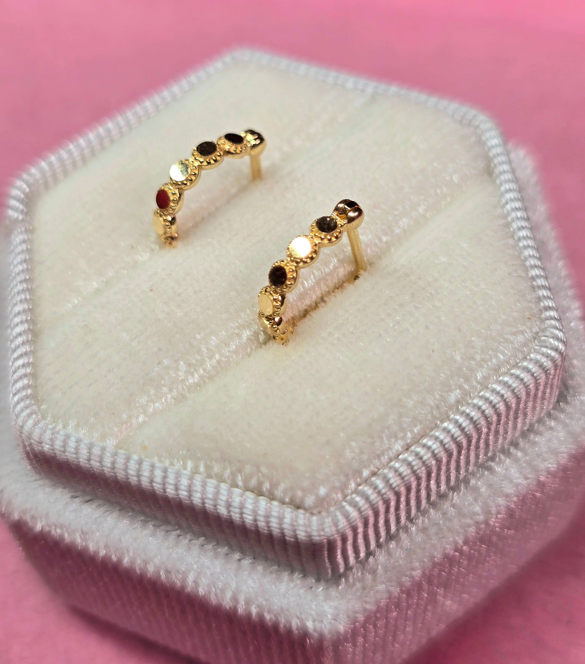 Aretes de oro 14k puro, con cierre de rosquita, se pueden usar desde los 10 dias de nacida e ideales para tus piercings. (Tomar en cuenta que no debe ser muy gruesa tu orejita)