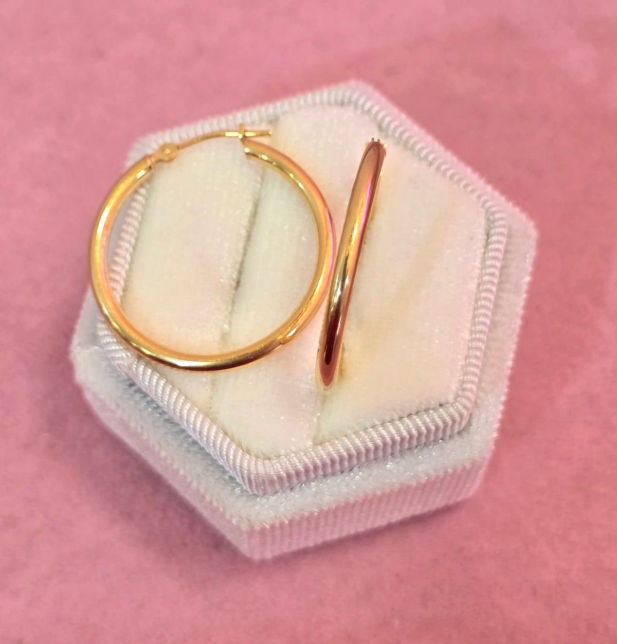Aretes de oro 14k puro, con cierre de rosquita, se pueden usar desde los 10 dias de nacida e ideales para tus piercings. (Tomar en cuenta que no debe ser muy gruesa tu orejita)