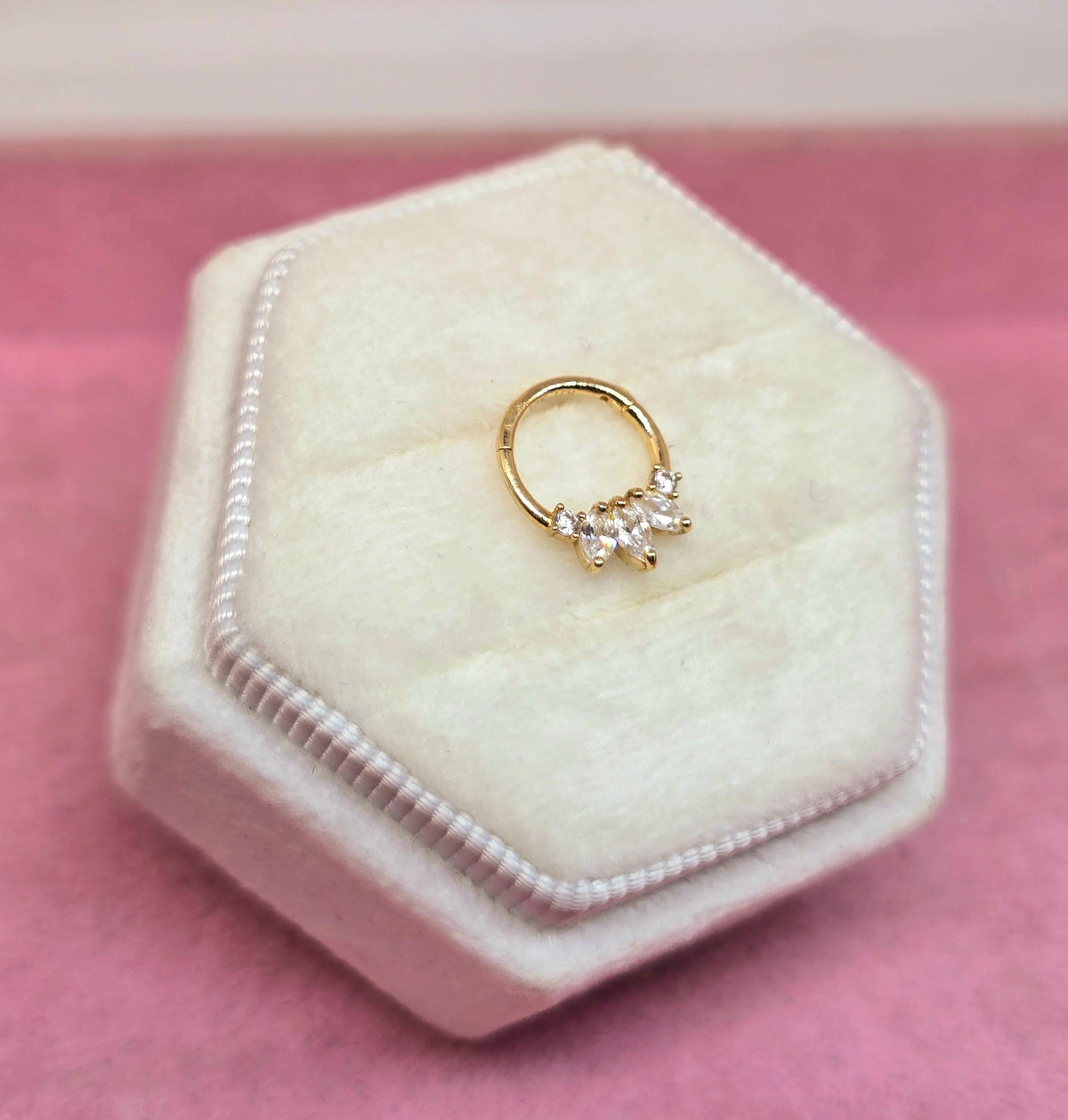 10k Piercing de circones para Daith piercing! hermoso ( recomendamos que tu piercing ya este cicatrizado, no lo coloques si aun te falta cicatrizar)