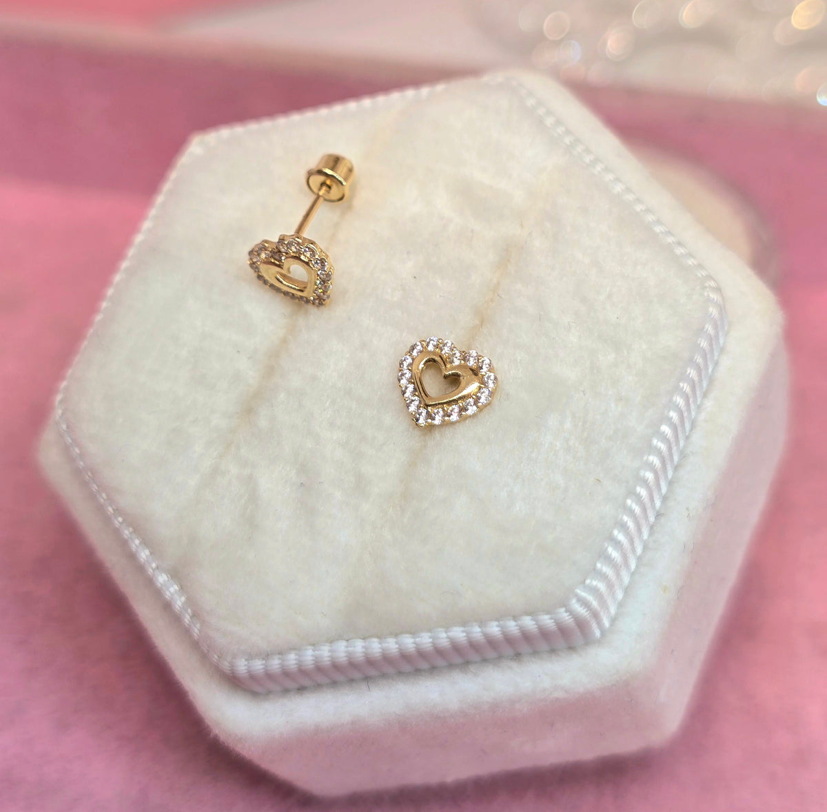 Aretes de oro 14k con tapon enroscable y formas, ideales para piercings y para niñas! todos te encantaran!