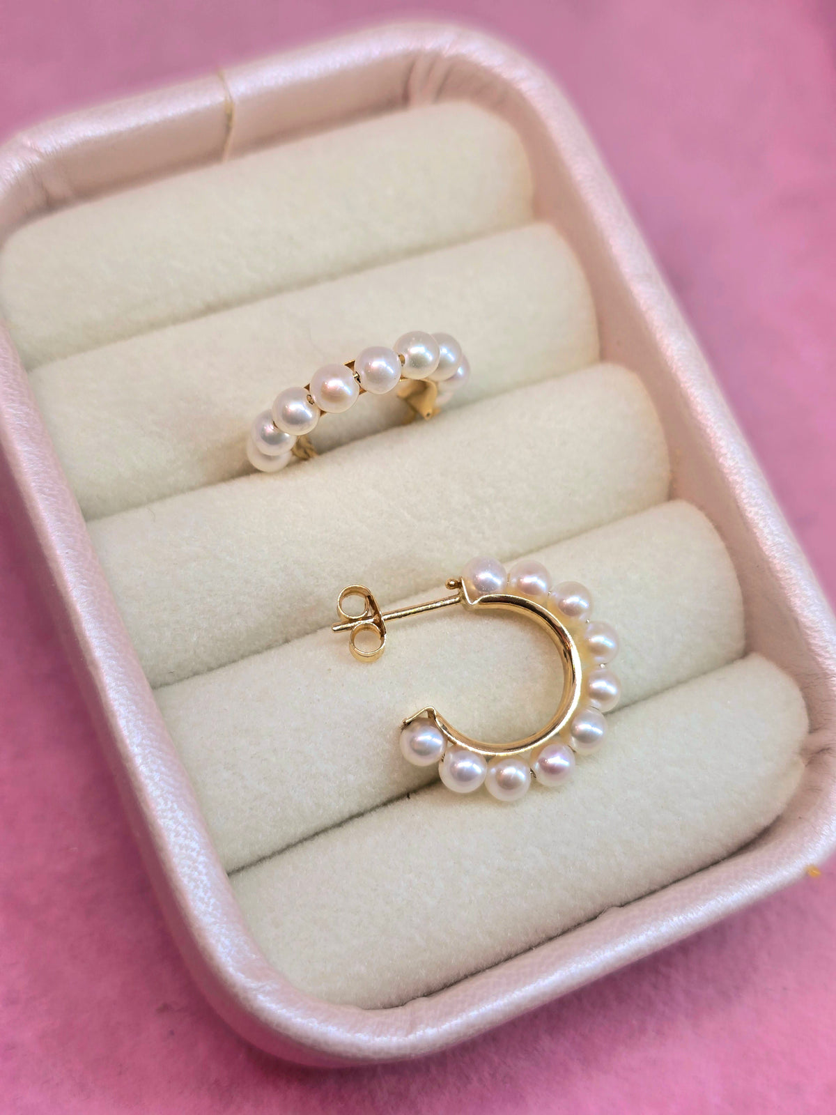 Argollas con perlas naturales con base de oro 14k y tapon de mariposa