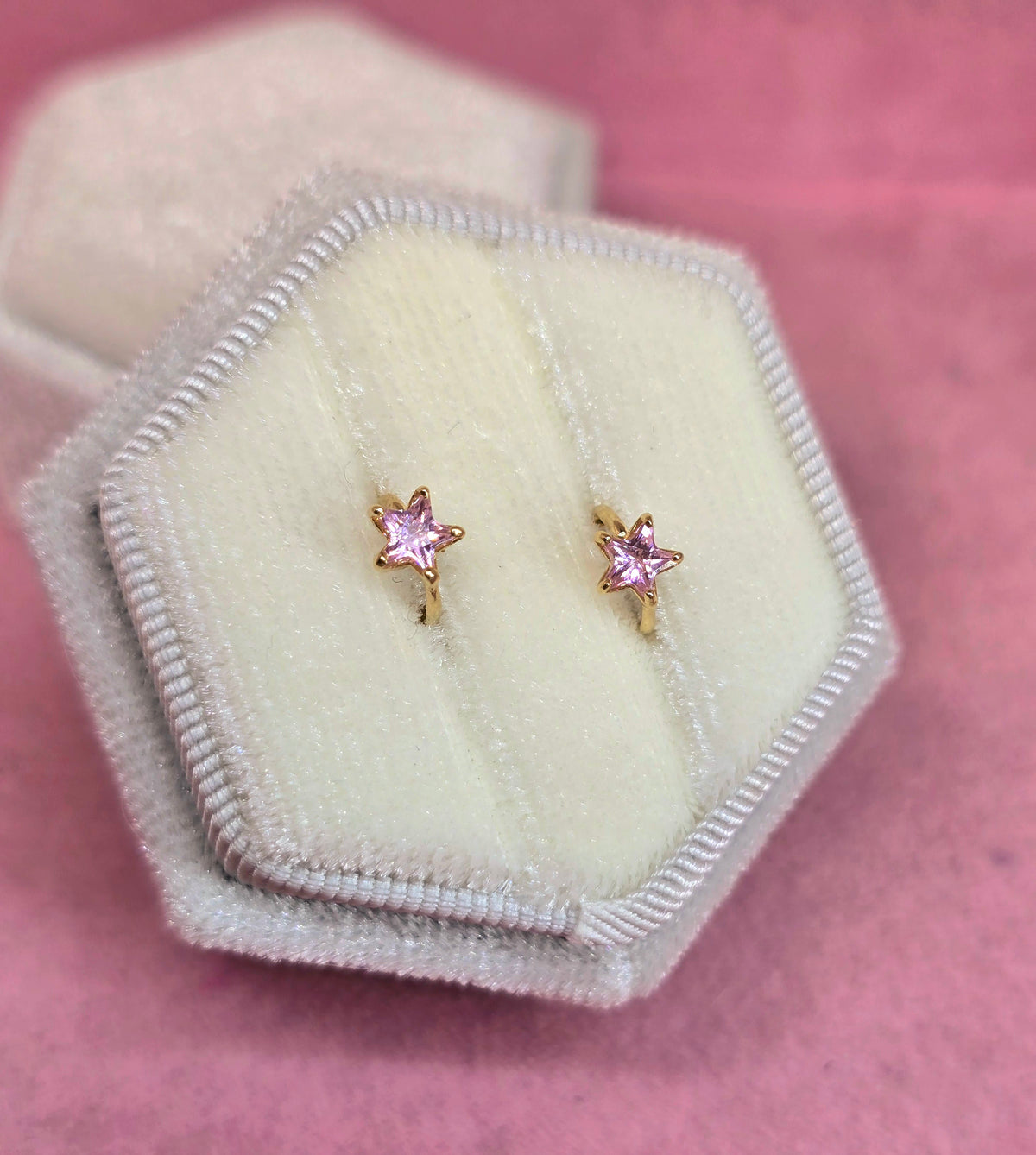 HERMOSAS mini hoops lisas en oro 14k con detalle de estrella