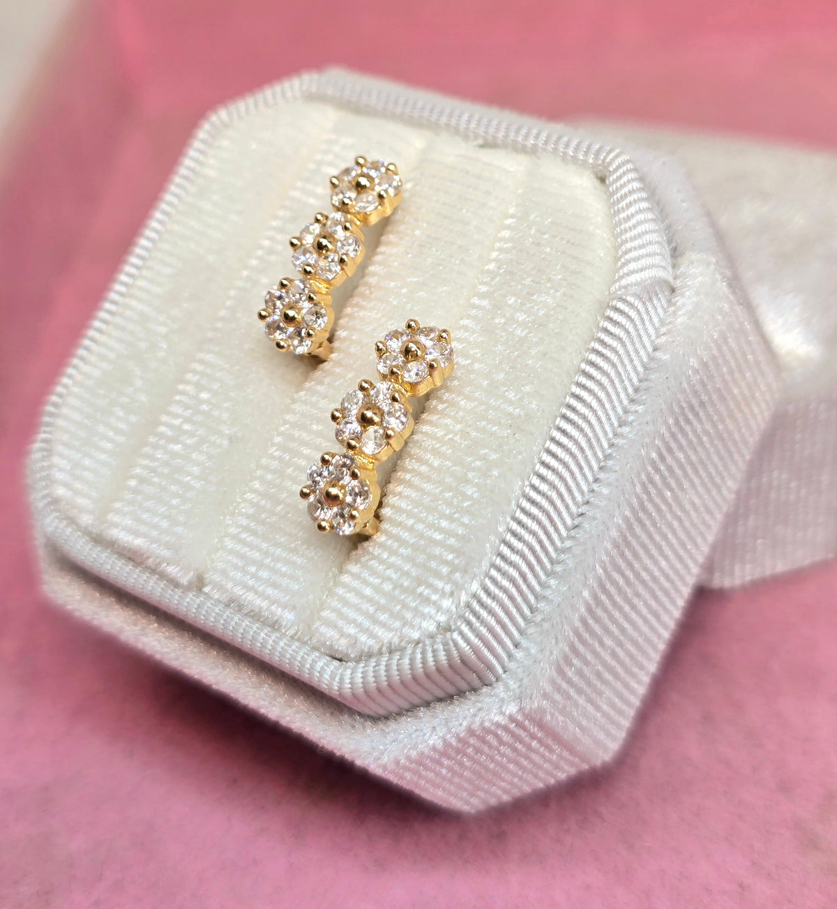 14K Argolla alargada de 3 flores con circones