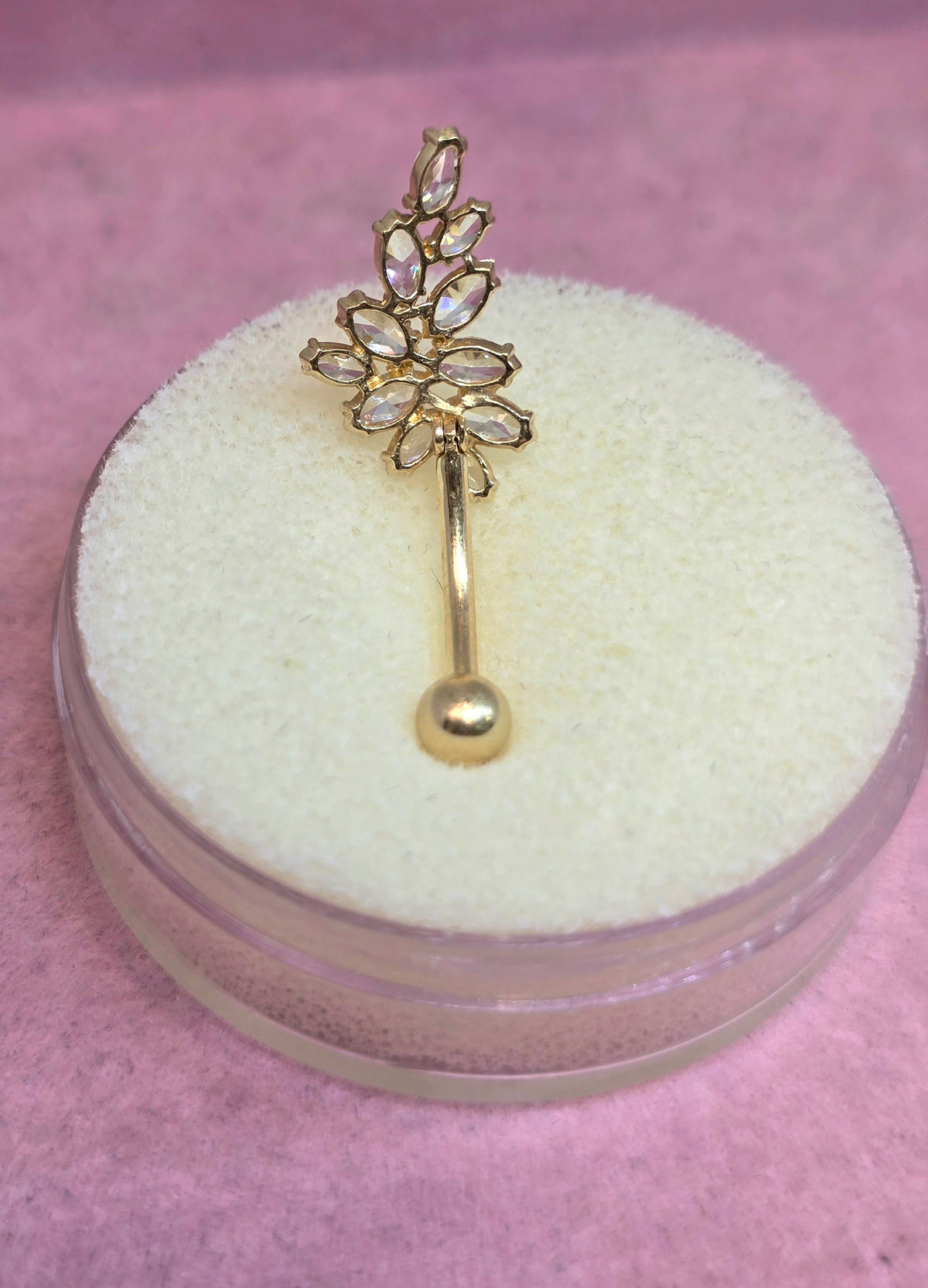 Piercing especial para ombligo en oro 14k con tapón enroscable y con un detalle de stud grande con circones (Es movil)