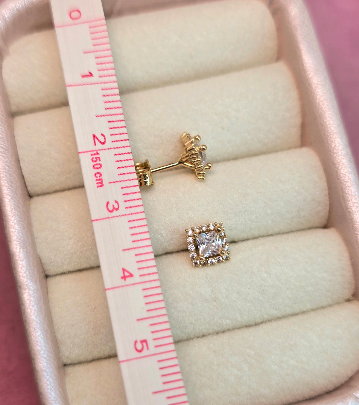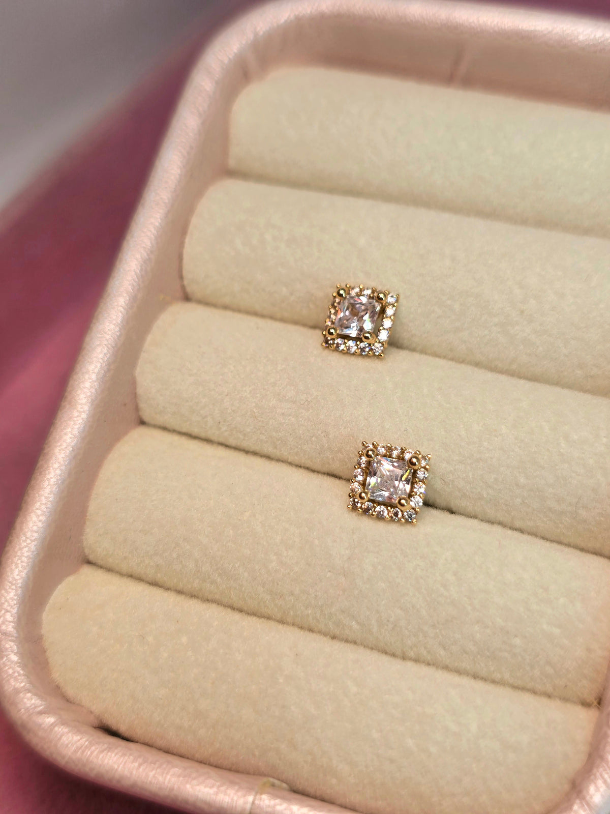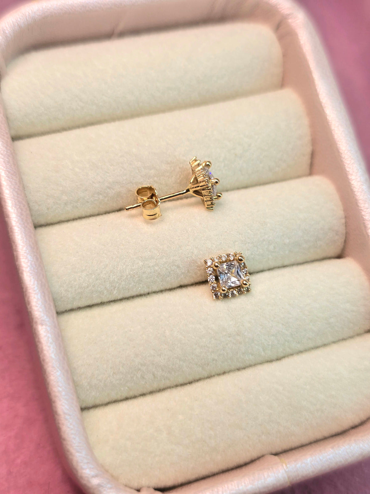 14K Studs cuadrados con circones