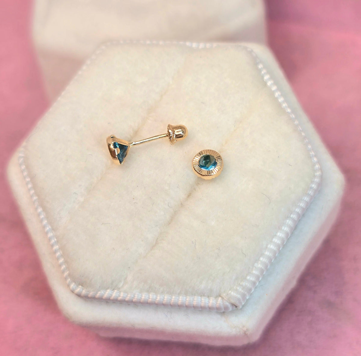 Aretes de oro 14k con tapon enroscable y formas, ideales para piercings y para niñas! todos te encantaran!