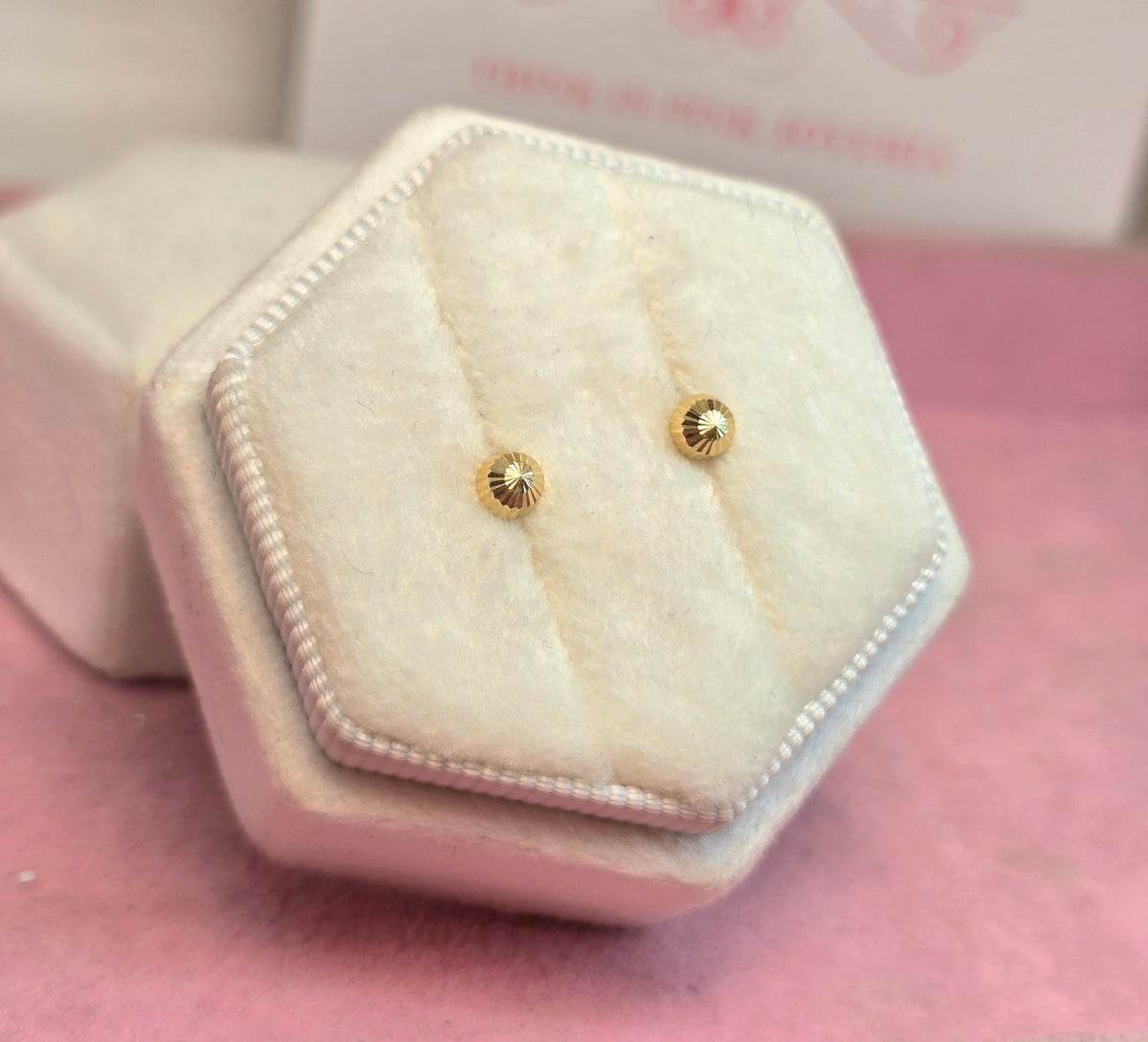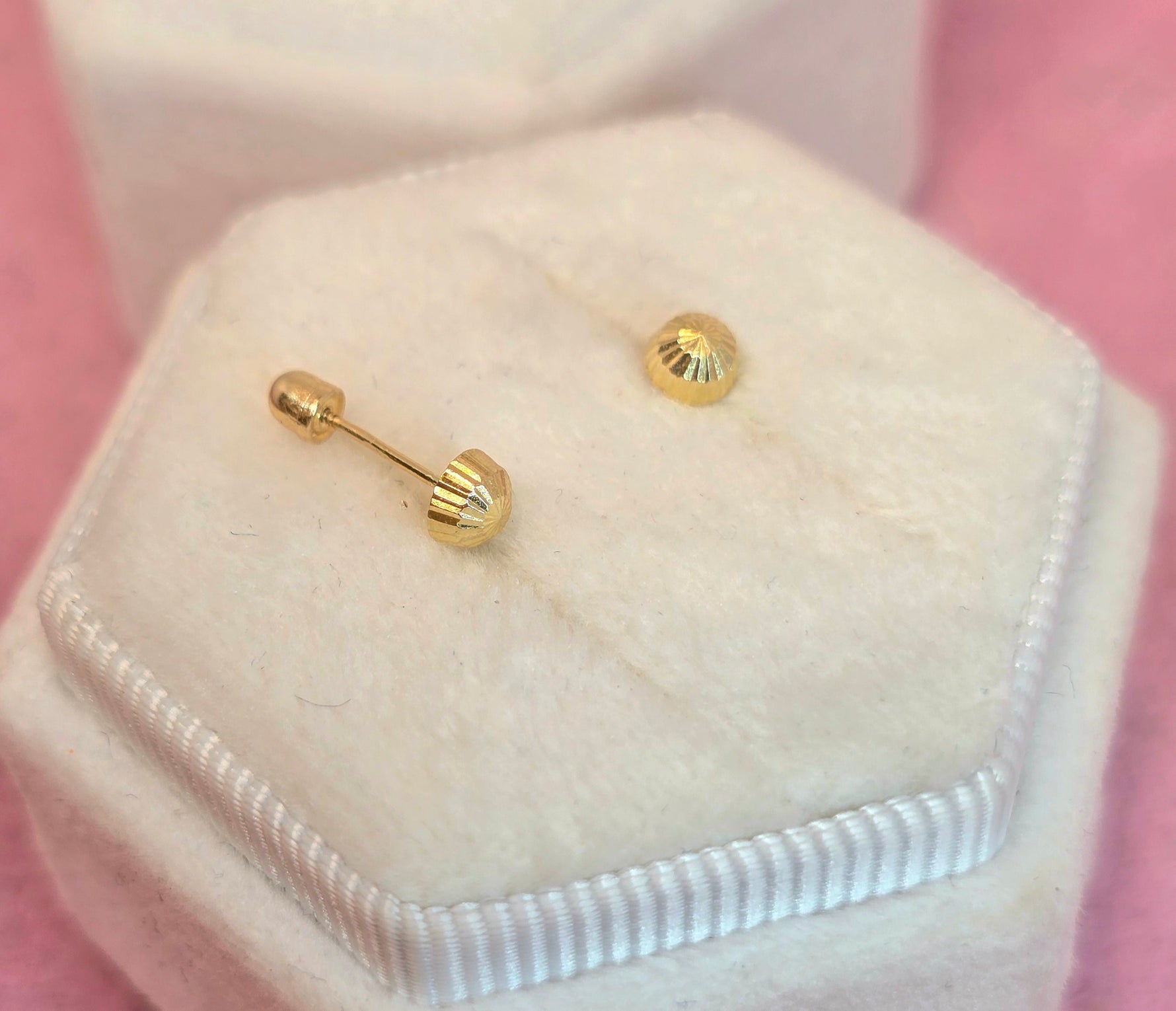 Aretes de oro 14k puro, con cierre de rosquita, se pueden usar desde los 10 dias de nacida e ideales para tus piercings. (Tomar en cuenta que no debe ser muy gruesa tu orejita)