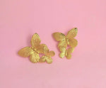 Aritos grandes de Brass con doble mariposa en tono dorado.