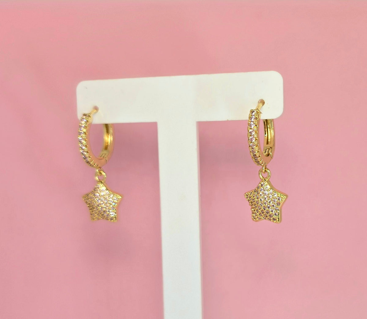 Brass hoops con estrella guindante con circones rosados