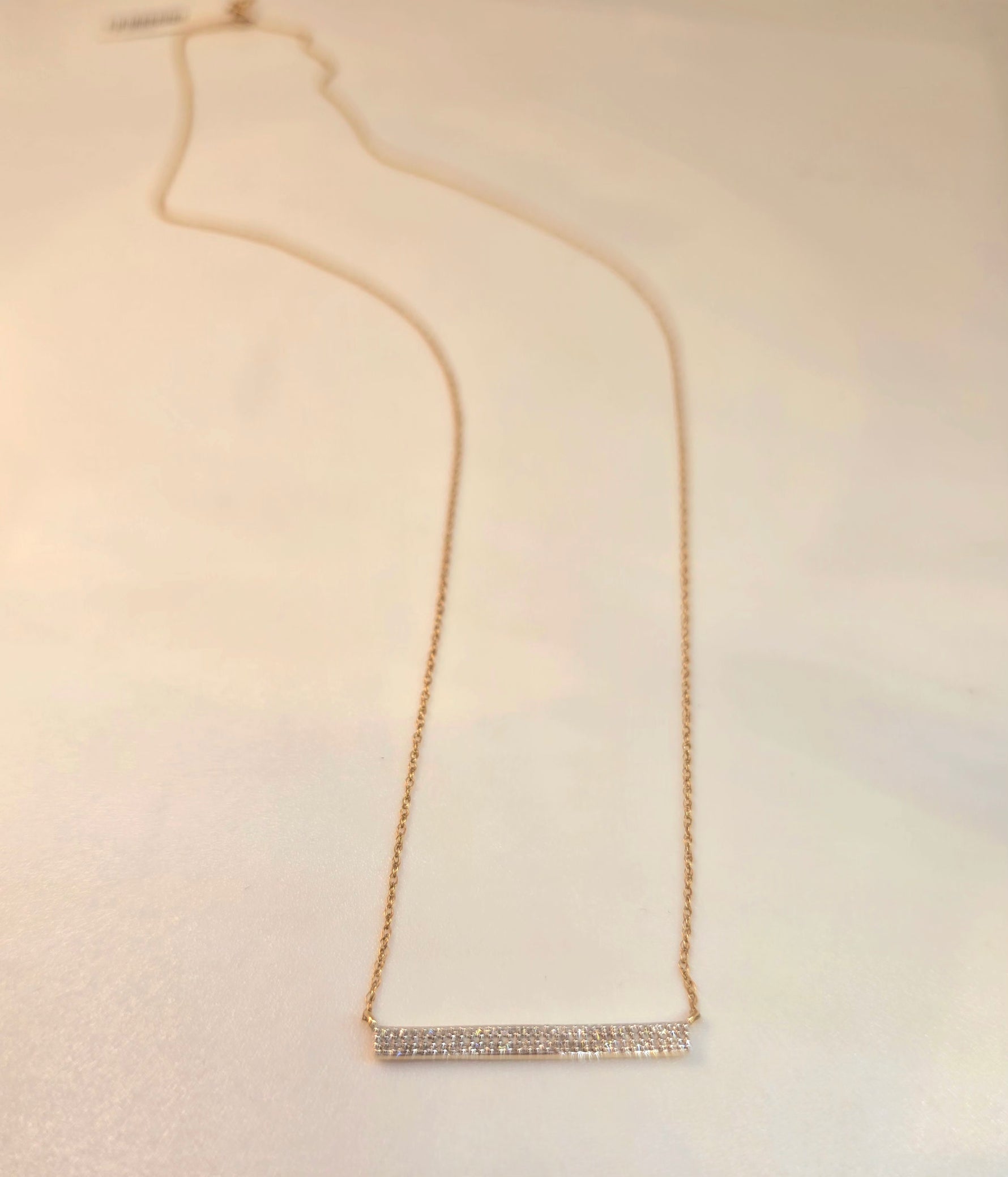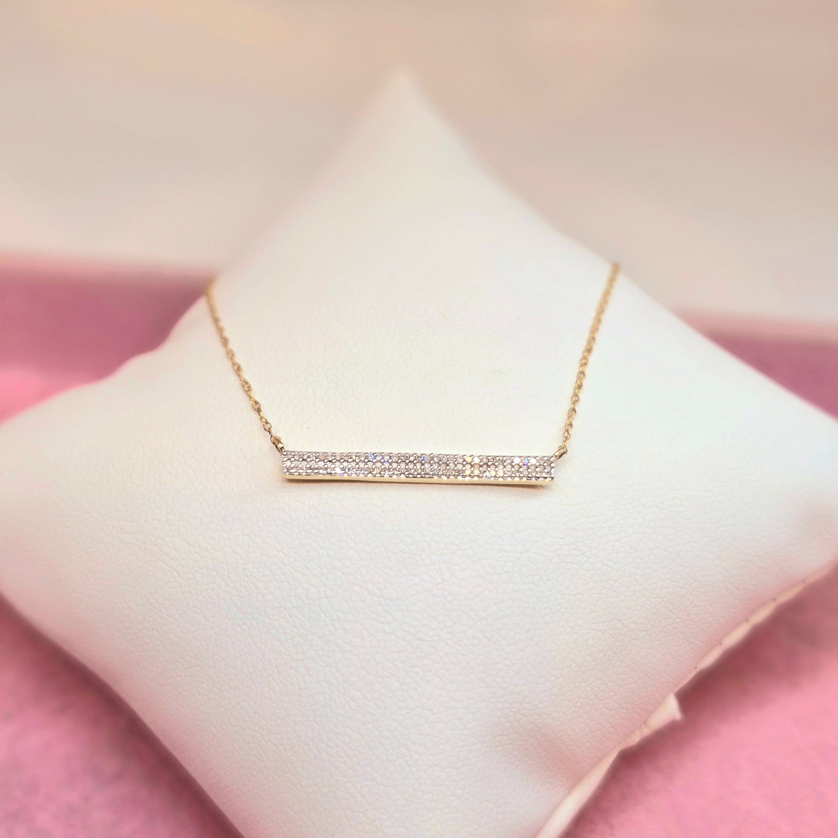 Cadena en oro 10k con dije de barra y diamantes verdaderos