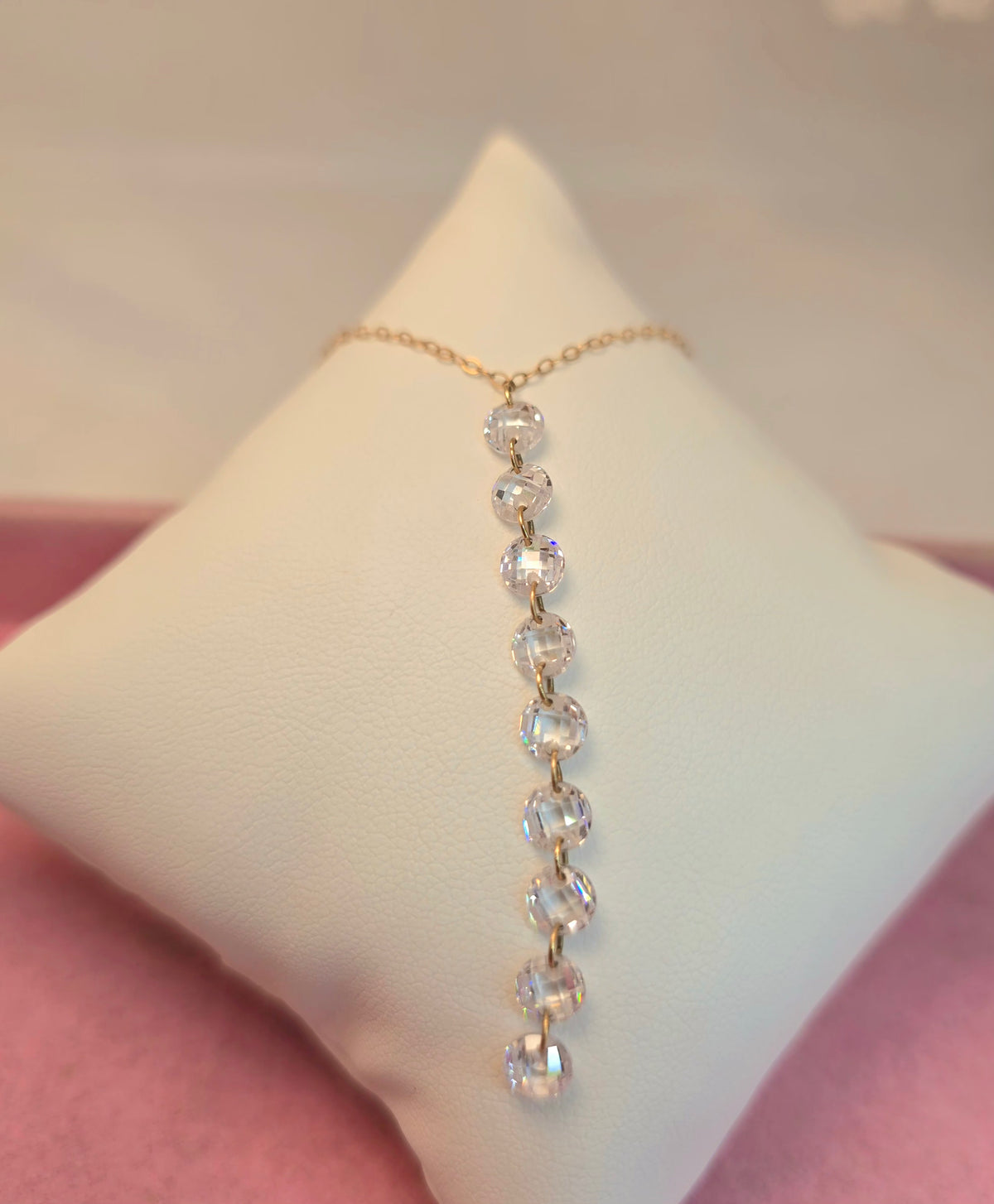 Hermosa cadena en oro 10k estilo corbatin! perfecto para una camisa o vestido cuello V y dije largo de circones redondos!