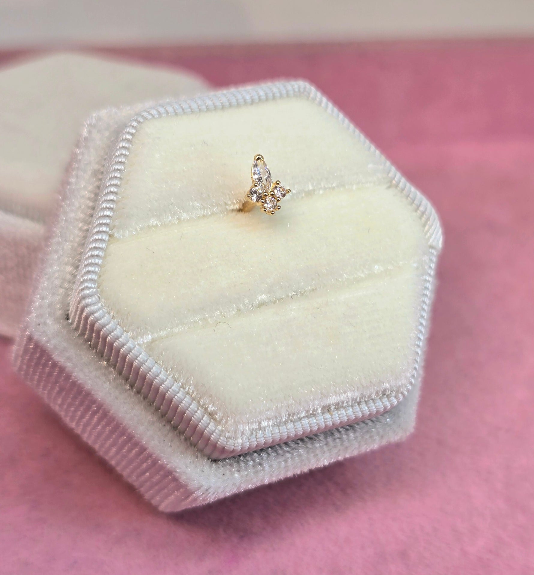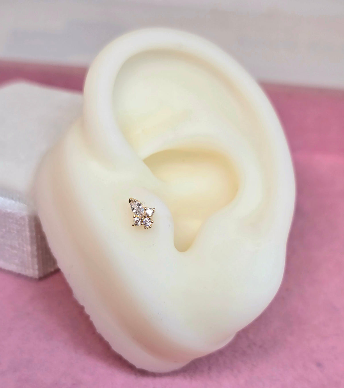 Aretes de oro 14k con tapon enroscable y formas, ideales para piercings y para niñas! todos te encantaran!