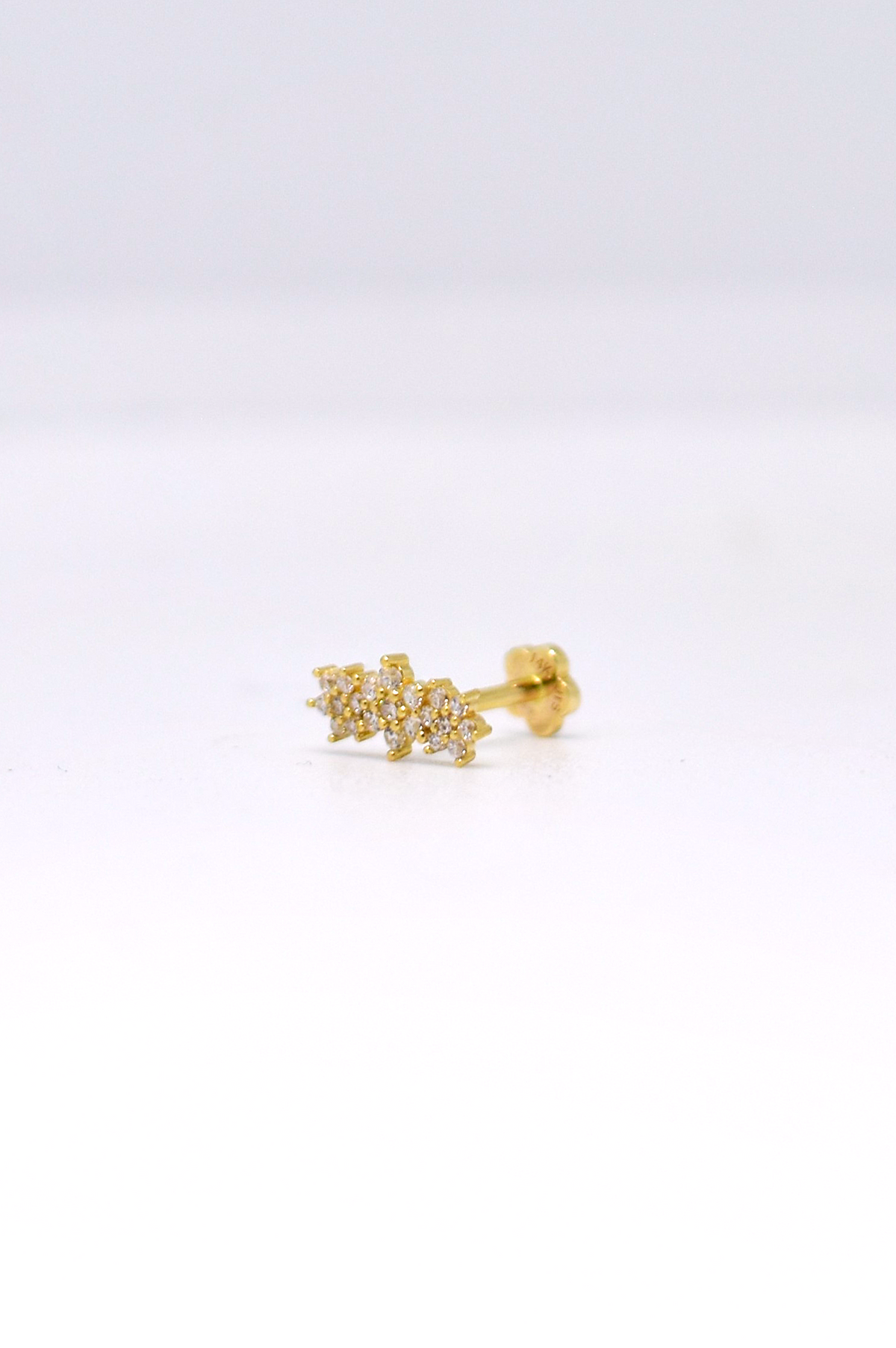 Piercing individual en oro puro 14k con diseño de 3 flores y cierre frontal (Flatcback)
