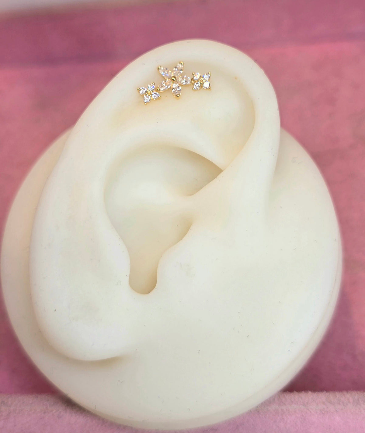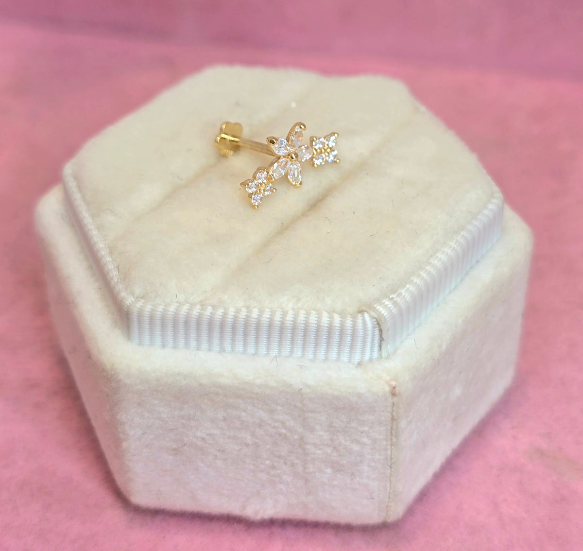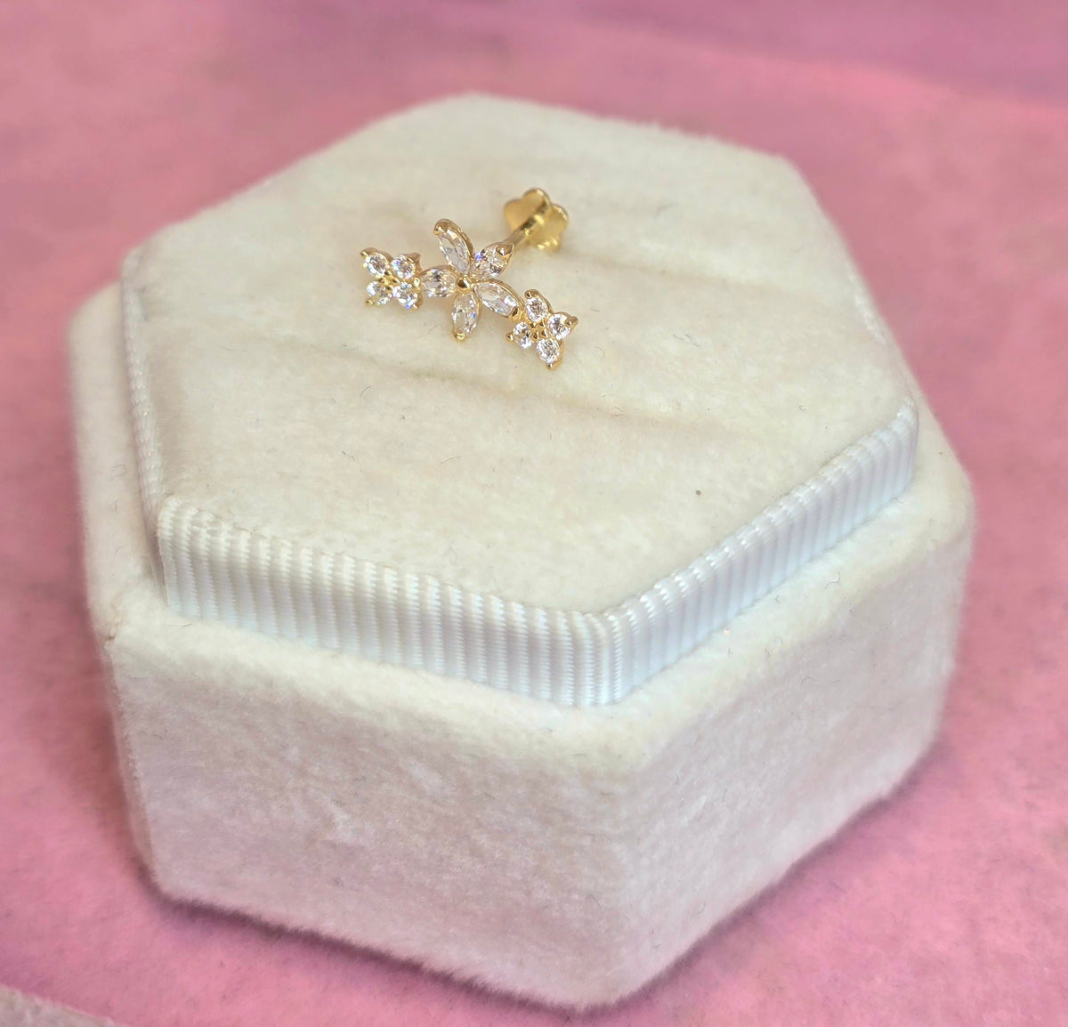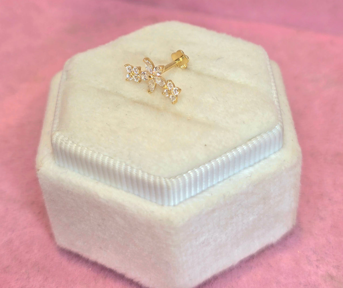 Aretes de oro 14k con tapon enroscable y formas, ideales para piercings y para niñas! todos te encantaran!