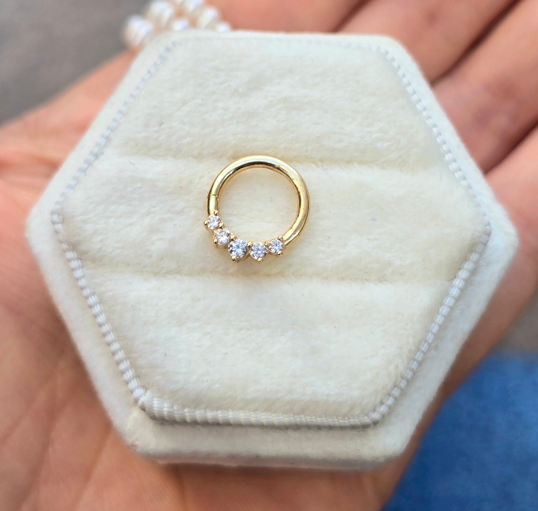 Arito individual en oro 14k con circones para daith piercing y es la opción perfecta para una perforación inicial
