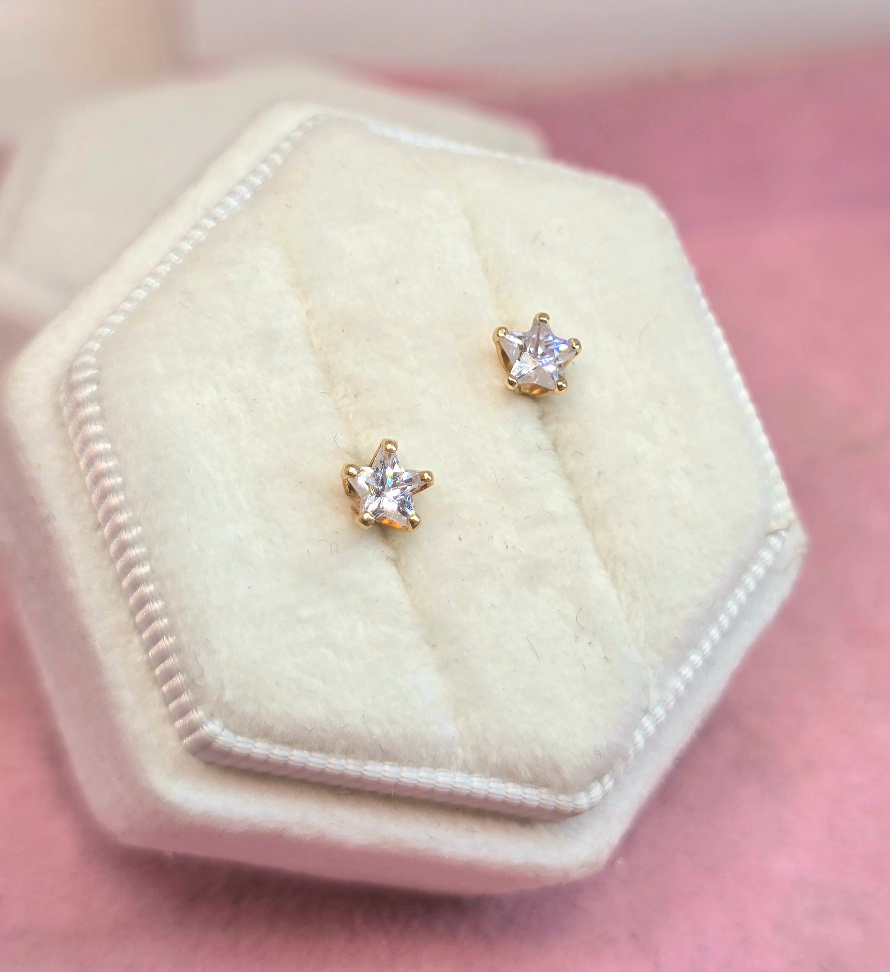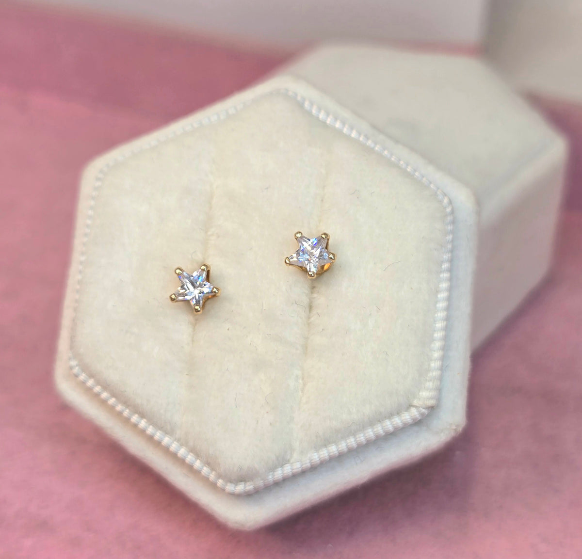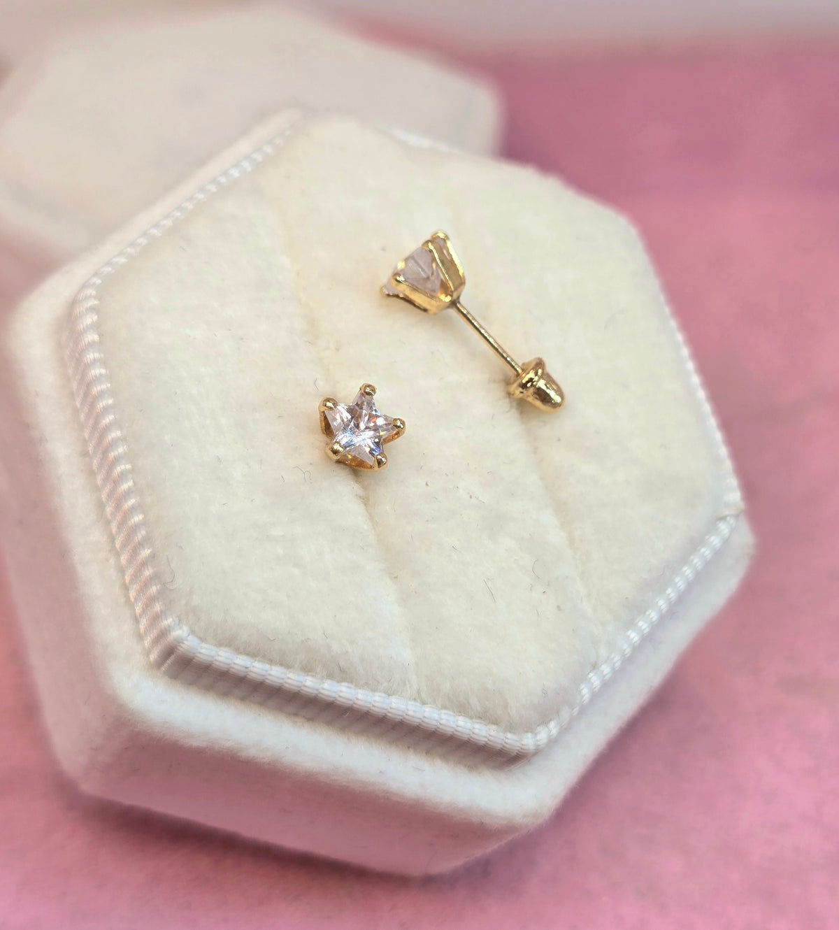 Aretes de oro 14k con tapon enroscable y formas, ideales para piercings y para niñas! todos te encantaran!