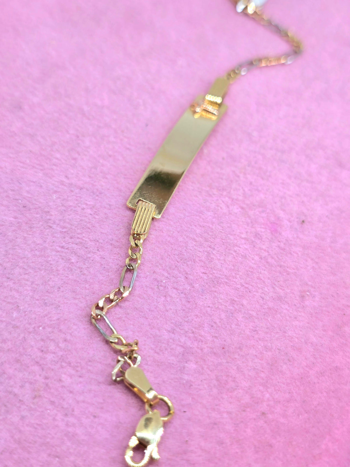14K Pulsera con diseño de cruz en plaquita para niñ@