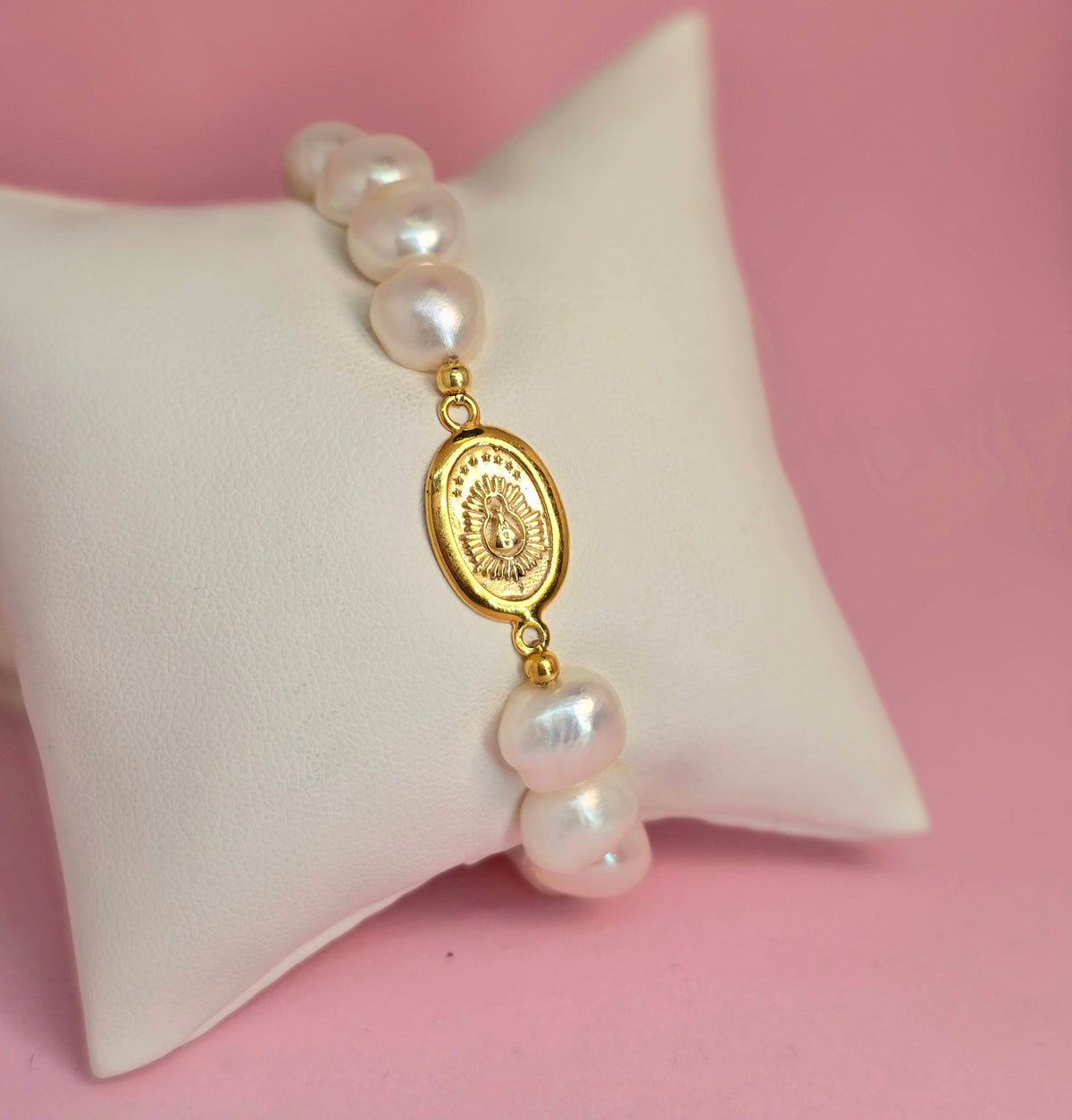 Pulsera Virgencita Ovalada con perla irregular 9mm