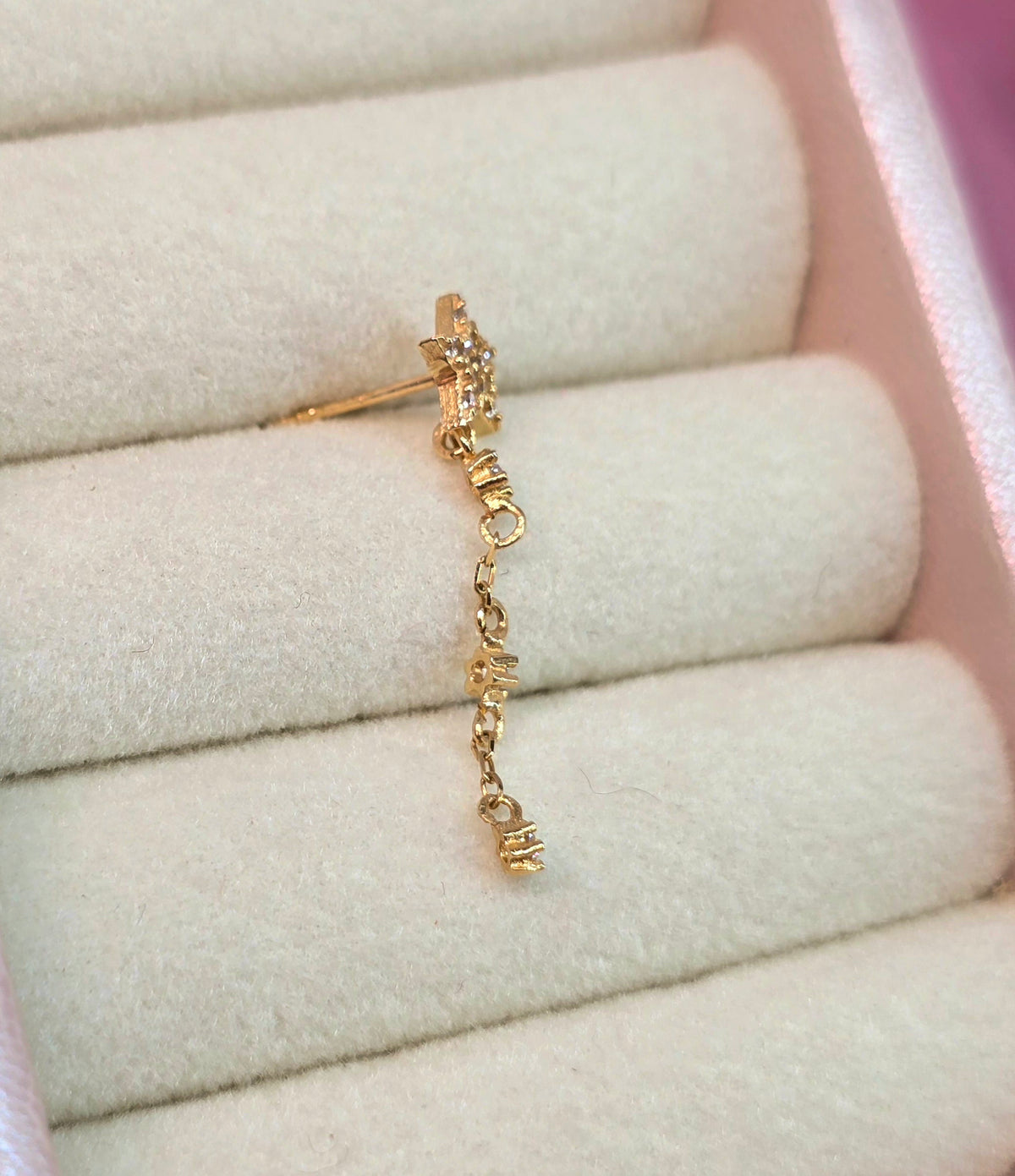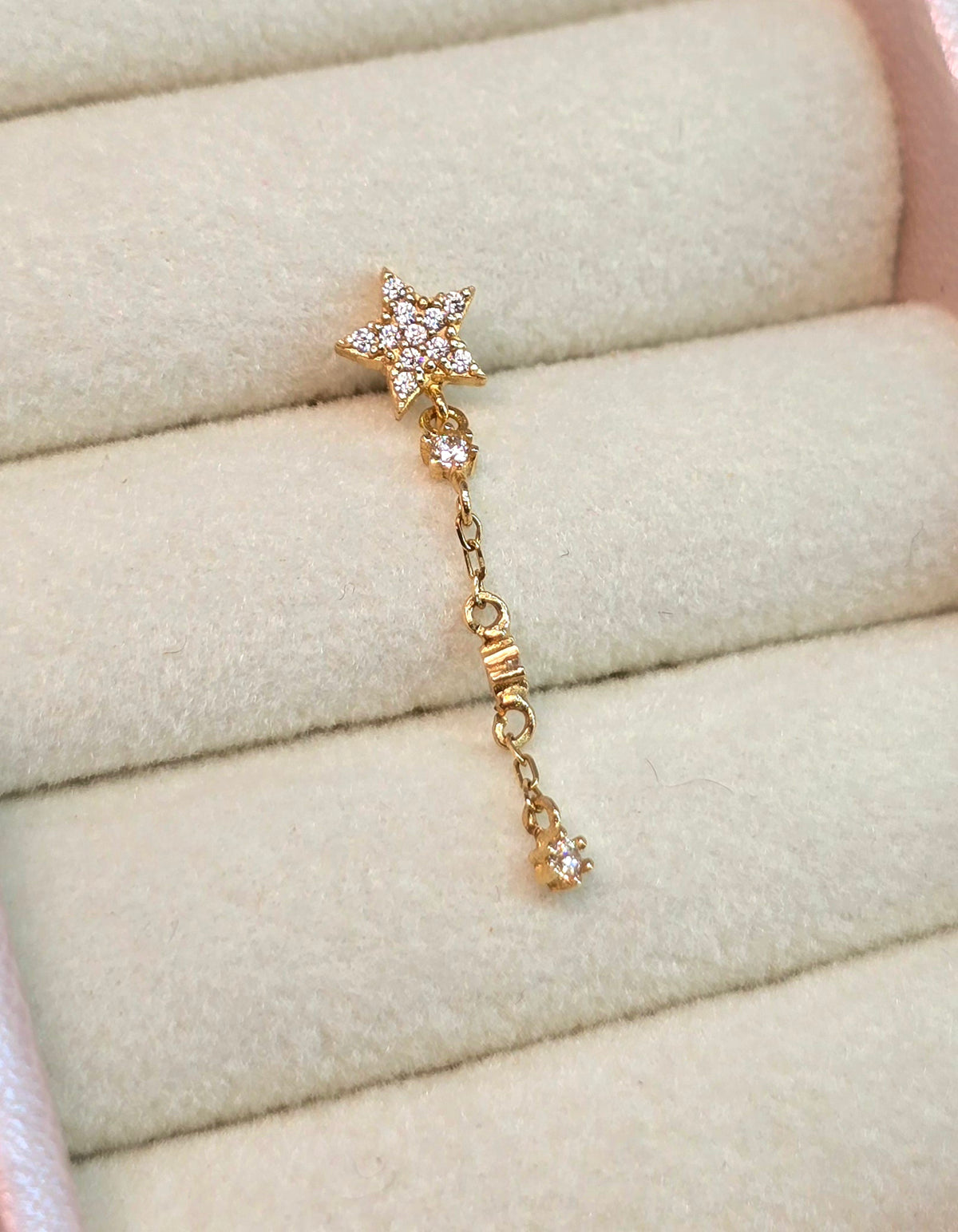 Piercing individual de oro 14K con una bella estrella con cadena colgante acompañada de circones.