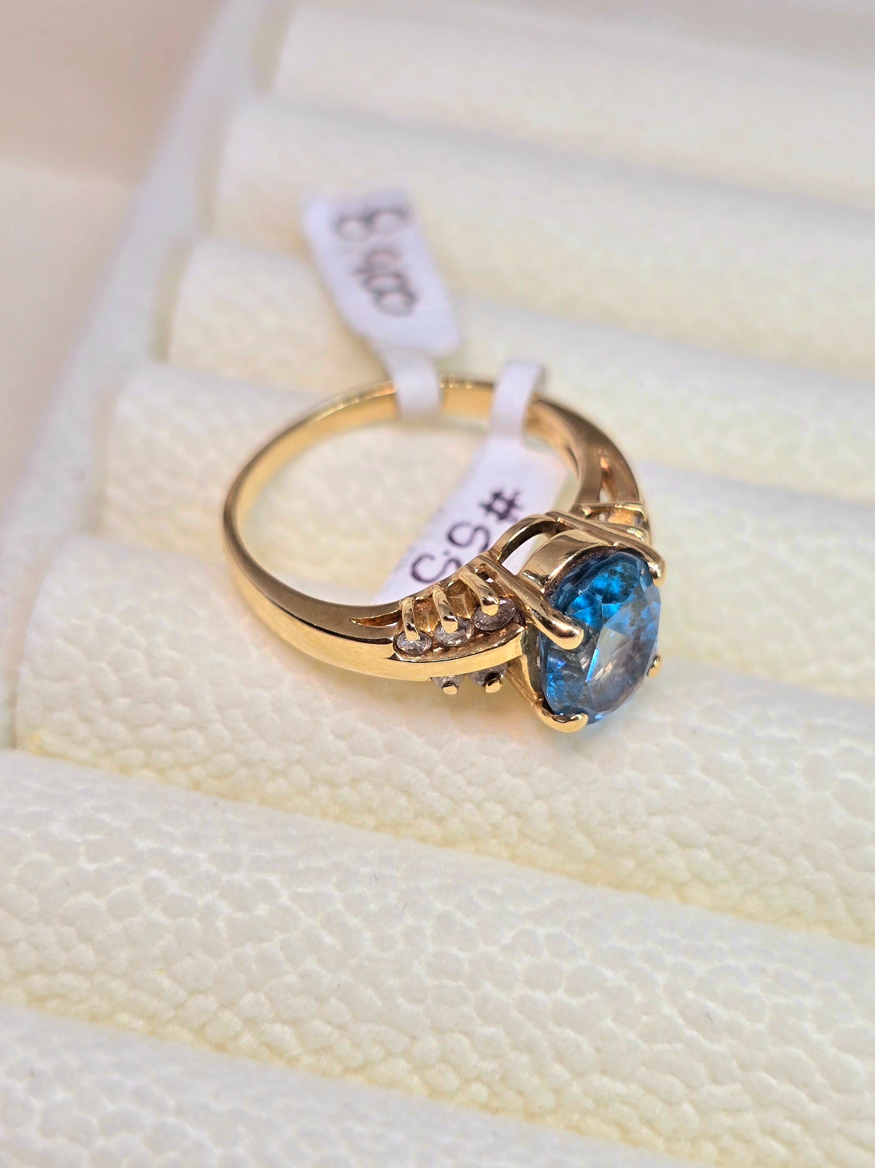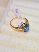 Anillo de oro 14k con piedra azul aquamarina y diamantes verdaderos!