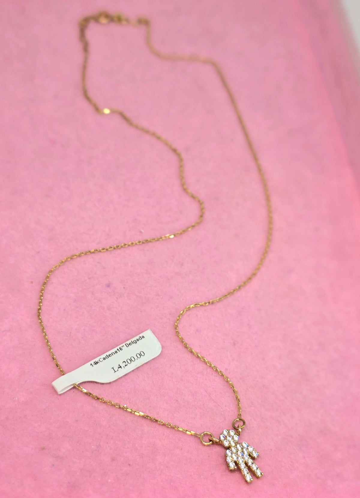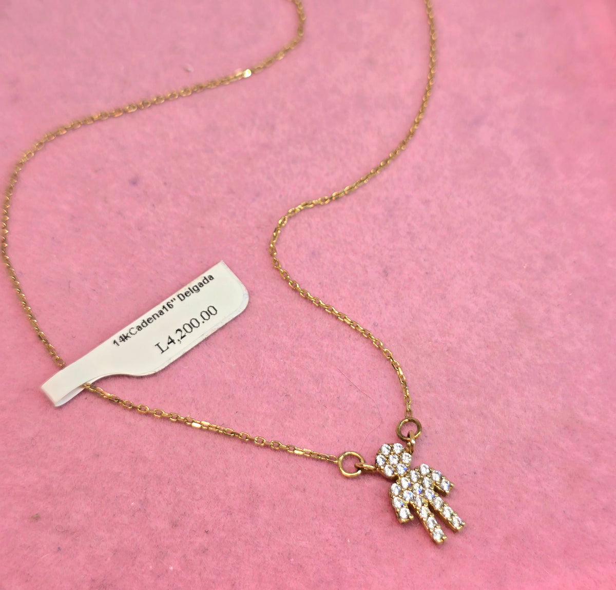 10K Cadena con dije de niño con circones (Son las 2 cosas)