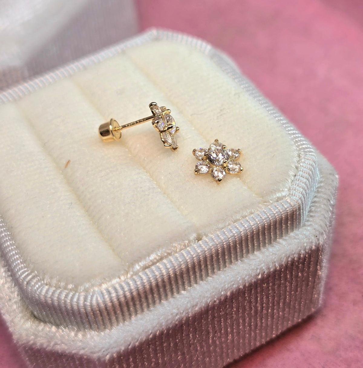 Aretes de oro 14k puro, con cierre de rosquita, se pueden usar desde los 10 dias de nacida e ideales para tus piercings. (Tomar en cuenta que no debe ser muy gruesa tu orejita)