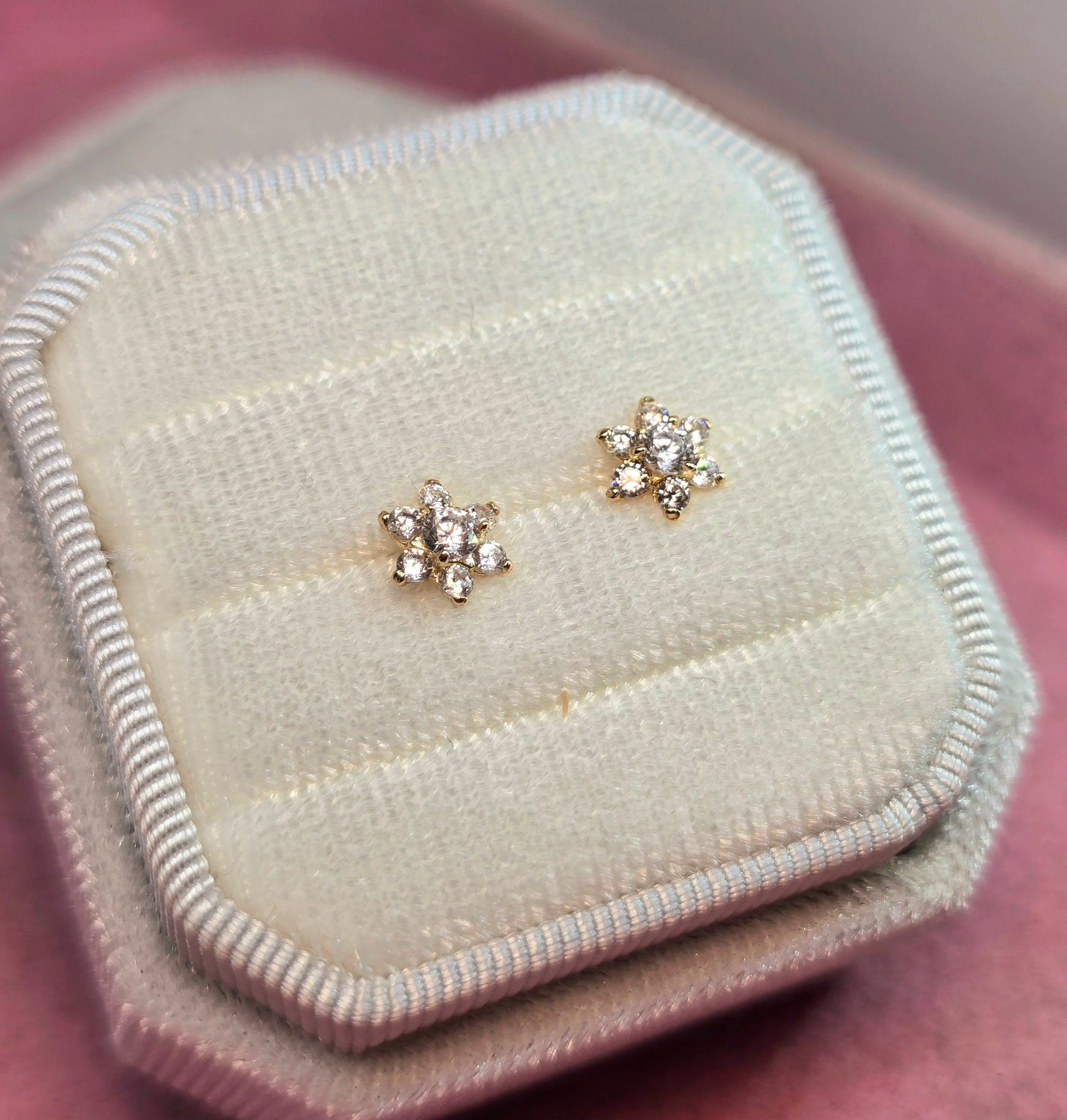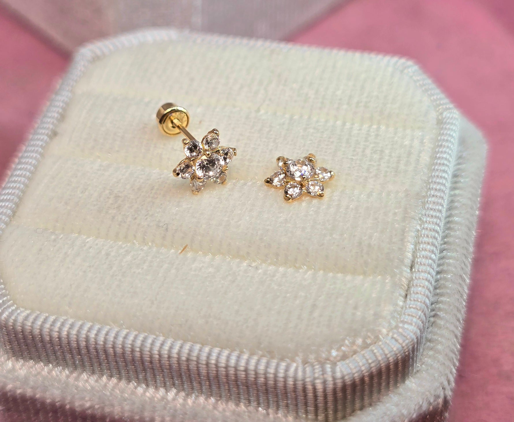 Aretes de oro 14k con tapon enroscable y formas, ideales para piercings y para niñas! todos te encantaran!